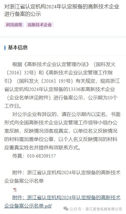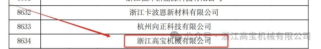 浙江高寶機(jī)械有限公司通過省認(rèn)定機(jī)構(gòu)2024年認(rèn)定報備的高新技術(shù)企業(yè)