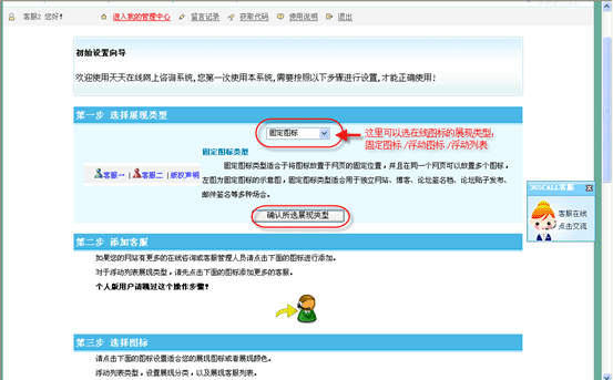 添加完客服后,就可以進入第三步選擇在線圖標了,在“圖:初始設(shè)置向?qū)?2 ” 上點擊“在線圖標設(shè)置”就彈出在線圖標設(shè)置窗口:
