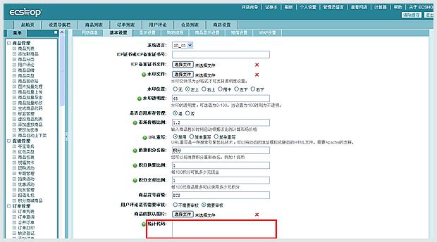 獲取在線客服安裝代碼,然后登陸ECShop網(wǎng)上商店系統(tǒng)后臺,選擇菜單"系統(tǒng)設(shè)置"->"商店設(shè)置"->"基本設(shè)置",將在線客服代碼加入到"統(tǒng)計代碼"中,然后點擊最下方的確定即可。