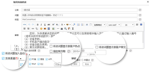 365webcall智能知識(shí)庫(kù)全媒體接入,統(tǒng)一管理、智能解答、熱點(diǎn)問(wèn)題、常見(jiàn)問(wèn)題、人員權(quán)限管理。