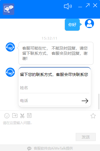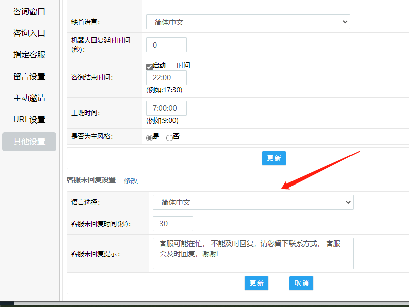 訪客可在客服休息時間或忙碌未及時回復時將自己的聯(lián)系方式留下,等待客服回呼解決問題,可在“系統(tǒng)設(shè)置-媒體對接-網(wǎng)頁(網(wǎng)站)-設(shè)置-咨詢?nèi)肟凇?/span>